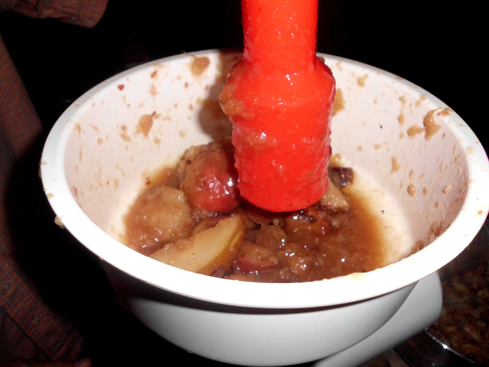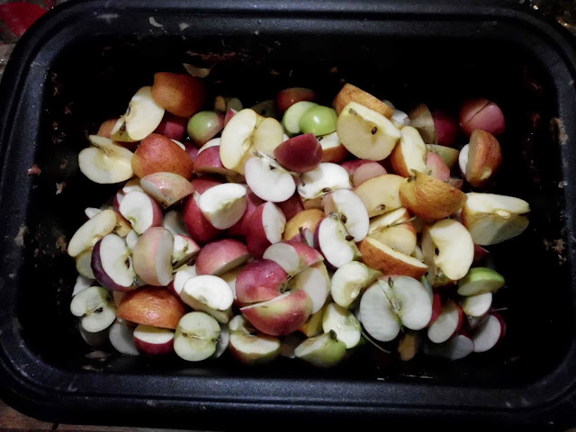 Step 1: Cut up the apples in quarters. Place in Nesco cooker with about 3 pints of water in with the apples.(also add water under the main pan as it states in the directions for the nesco cooker). Cook at 400 degrees for 1-2 hours or until soft.